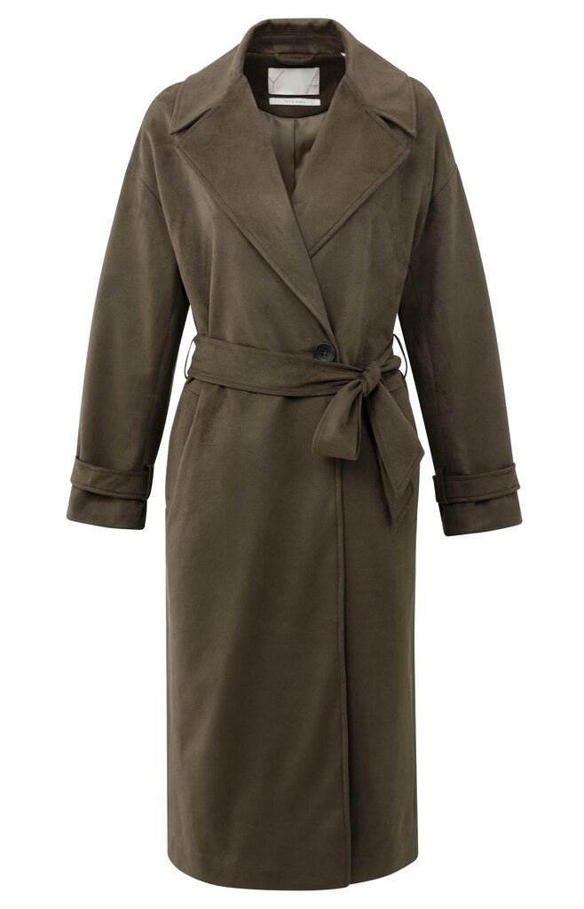 YAYA Langer Mantel aus Velourslederimitat mit Gürtel