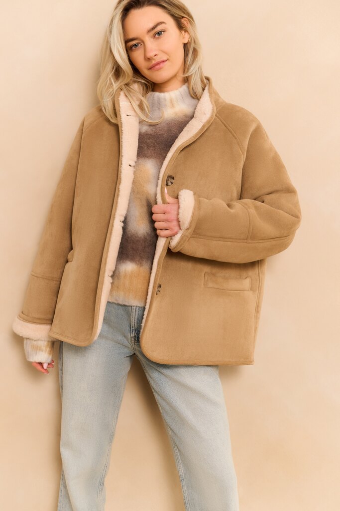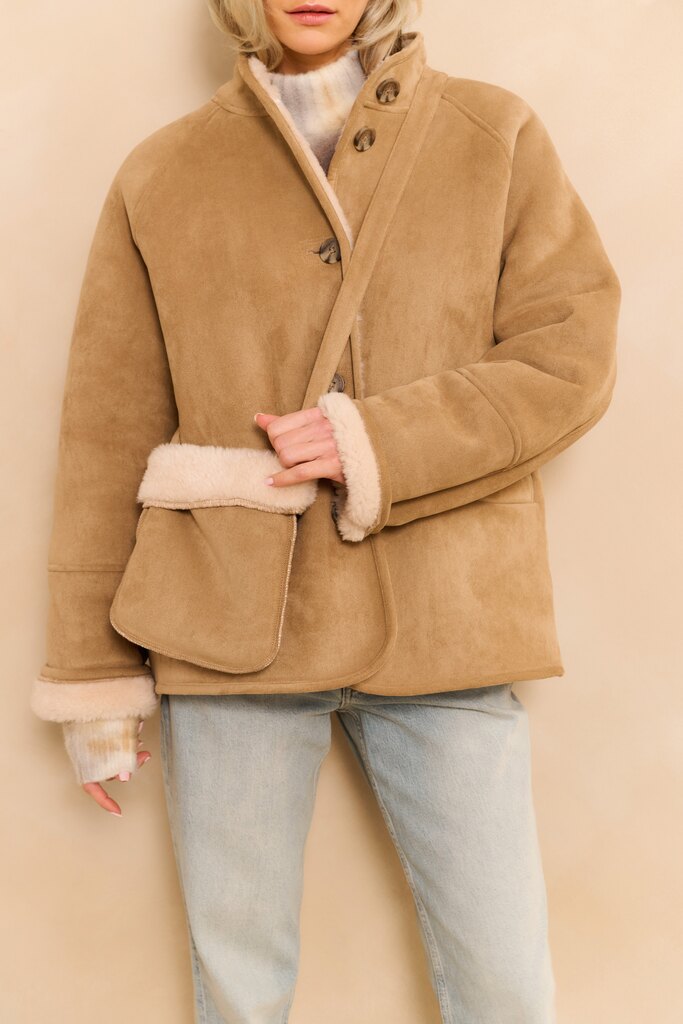 Oversize-Mantel in Lammfelloptik mit Raglanärmeln