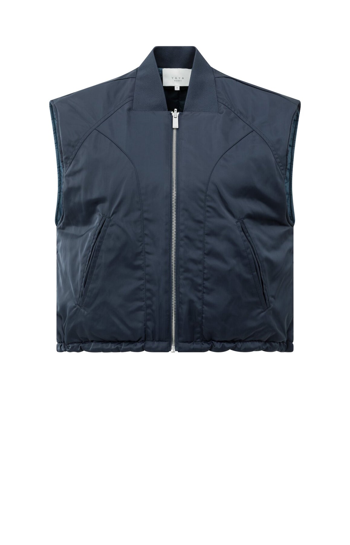 Diese vielseitige Weste kann mit der Innenseite nach außen getragen werden und bietet somit zwei stilvolle Looks in einem Kleidungsstück. Sie besteht aus glattem Nylon mit gepolstertem Futter, ist in normaler Passform geschnitten und verfügt über einen Reißverschluss. Der gerippte Kragen und die praktischen Paspeltaschen auf beiden Seiten runden den Look ab. Dank dem elastischen Saum hat die Weste eine bequeme Passform. Sie ist die perfekte Wahl für Lagenlooks in der Übergangszeit. Das Model ist 175 cm groß und trägt Größe 36.