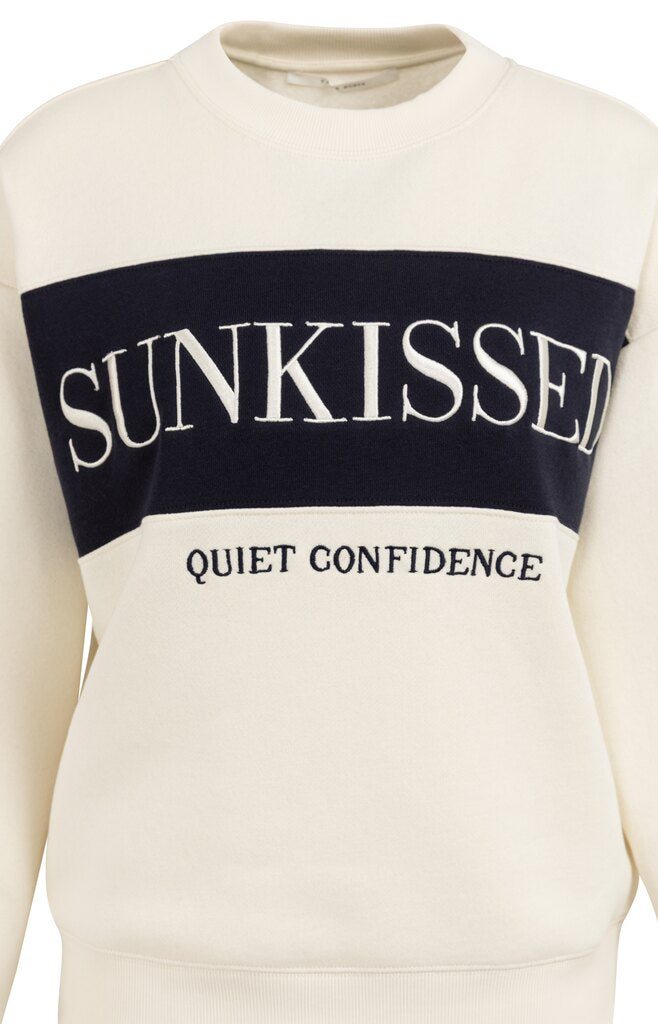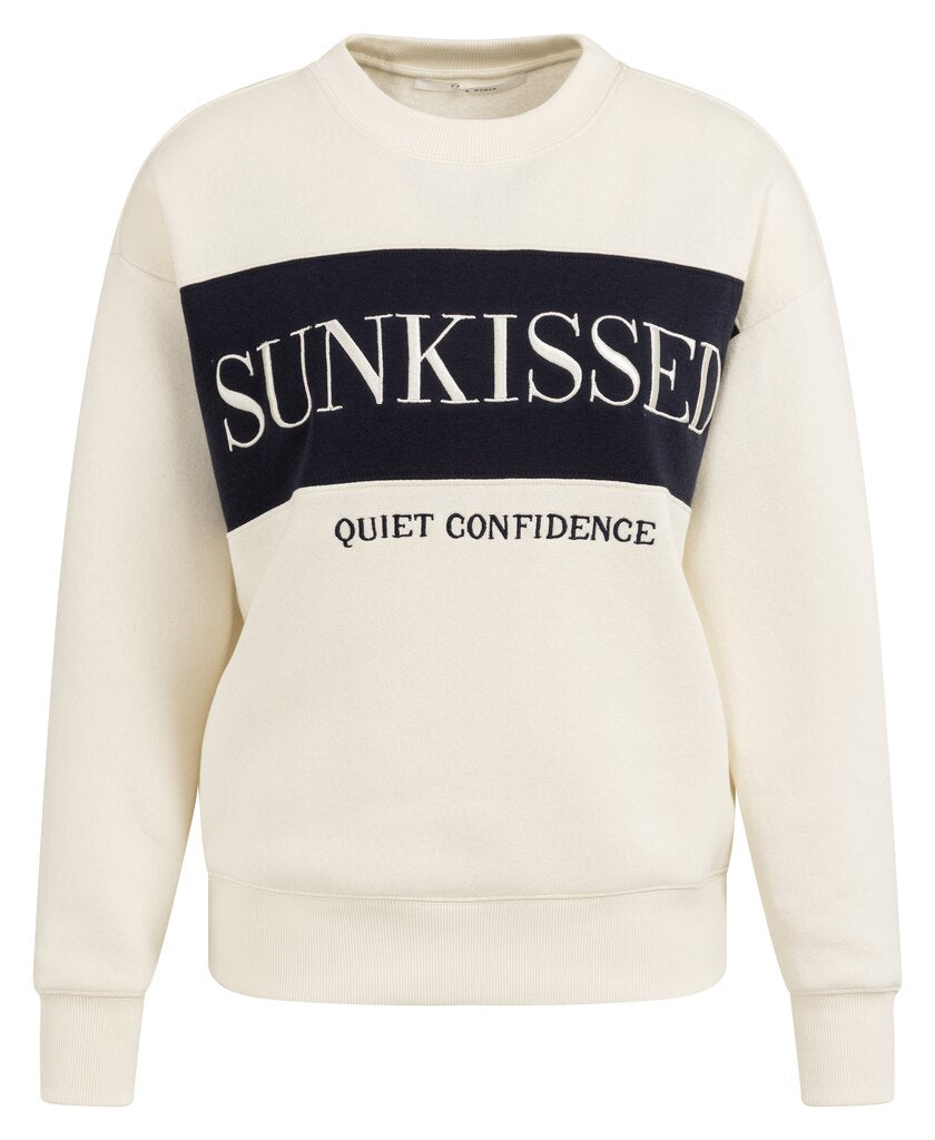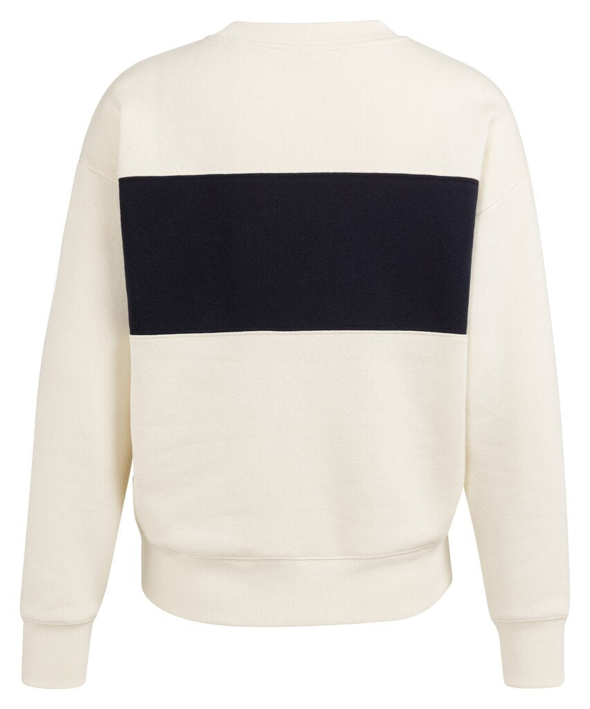 Dieser weiche Pullover hat eine lockere Passform, einen Rundhalsausschnitt und lange Ärmel mit gerippten Bündchen. Das Farbblock-Design, das durch einen verwegenen aufgestickten Schriftzug auf der Brust hervorgehoben wird, verleiht deinem Look eine zeitgenössische Note. Ein bequemes, stylishes Kleidungsstück, das sich perfekt für den Alltag eignet.