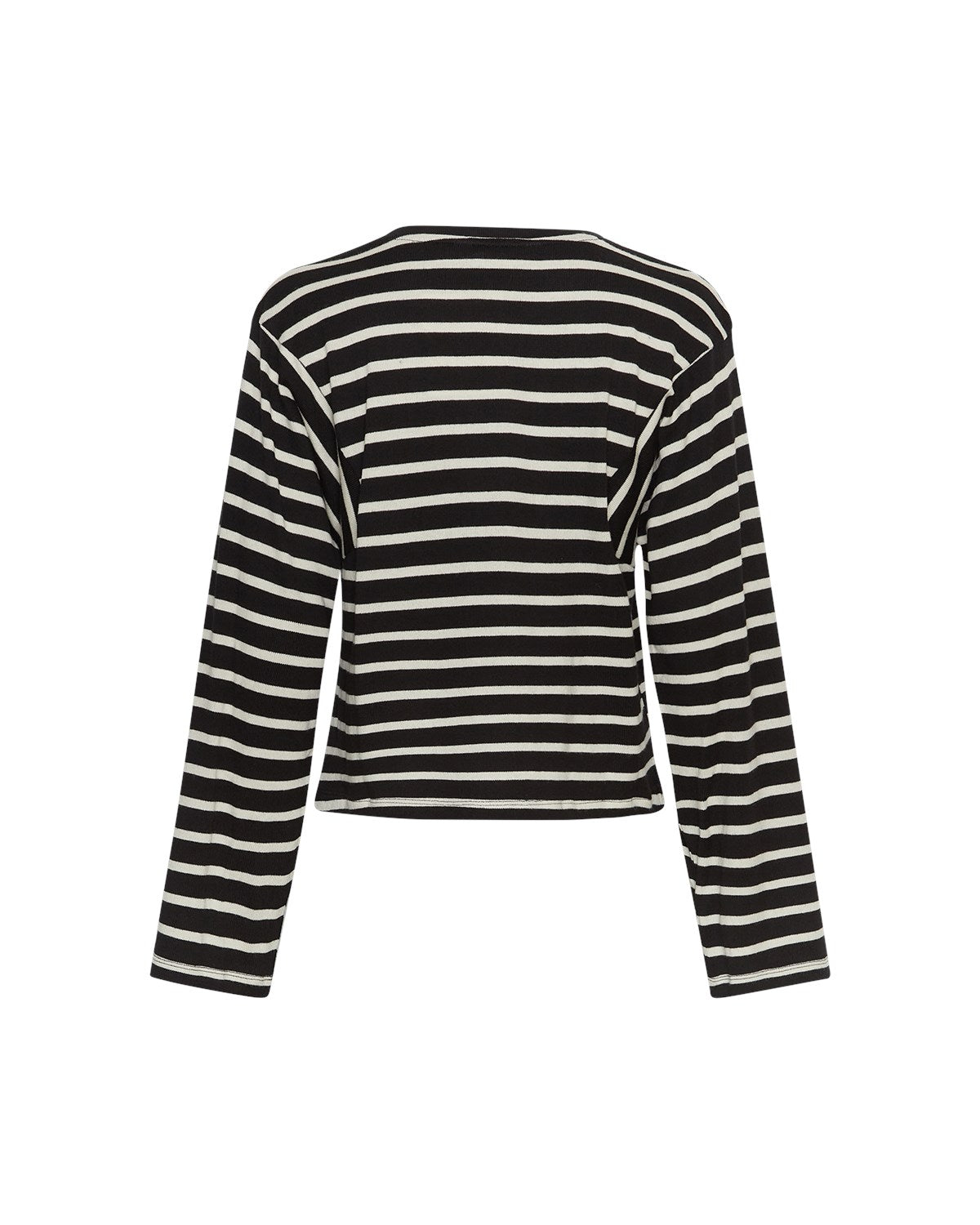 Bahara ist ein leichtes Oberteil mit schwarzen, horizontalen Streifen. Es ist ein klassisches T-Shirt mit Rundhalsausschnitt und eine mühelose Ergänzung für jedes Outfit – eine solide Basis für eine vielseitige Garderobe, da es auf viele Arten gestylt werden kann. Kombinieren Sie es mit Ihrer Lieblingsjeans, einem luftigen Sommerrock oder einer eleganten Hose – im Handumdrehen entsteht ein lässig-schicker Look.