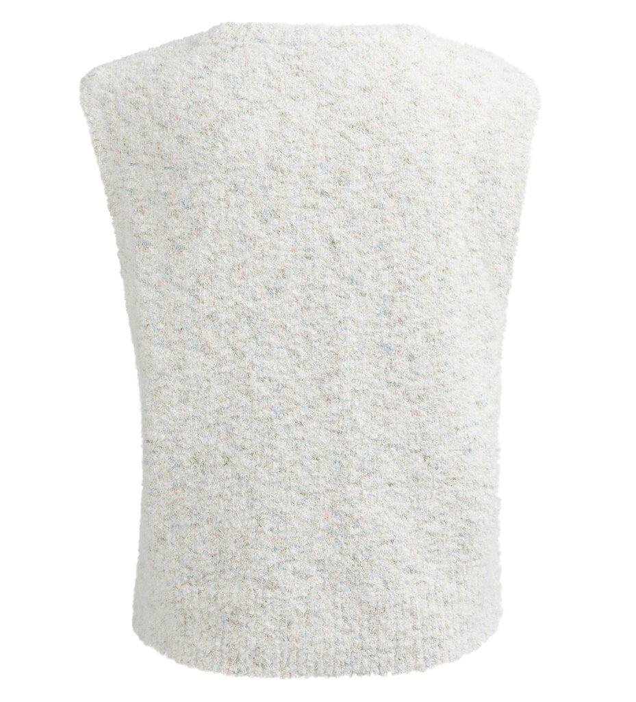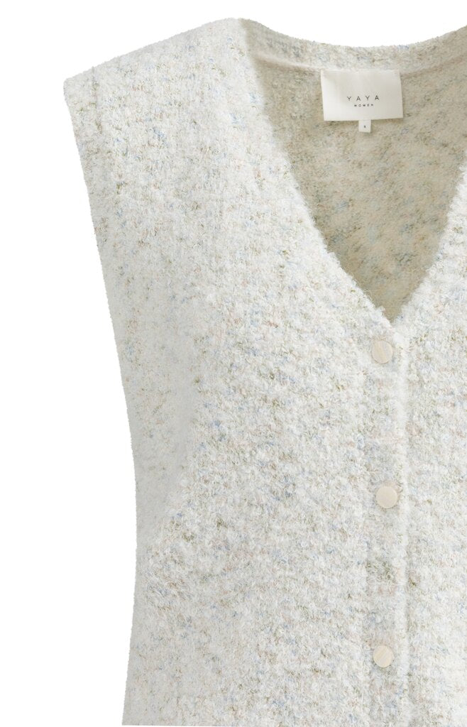 Ärmelloses Bouclé-Cardigan mit Knöpfen und Farbakzenten